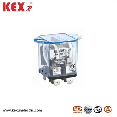 Den nye energikraftrelæ produceret af Kexun Electric Co, China Factory er en elektromagnetisk switching-enhed til kontrol af højspændings- og høje strømkredsløb, som kan kontrollere on-off af højeffektbelastninger (såsom AC-motorer og varmeapparater) gennem lav effekt-signaler (såsom DC). Model: 53f Brand : Kexr